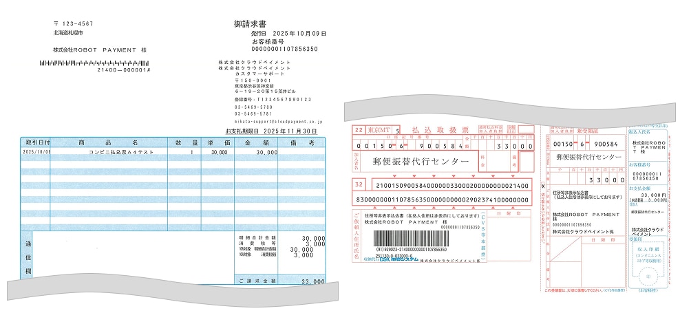 コンビニ払込票(A4タイプ)のSample画像