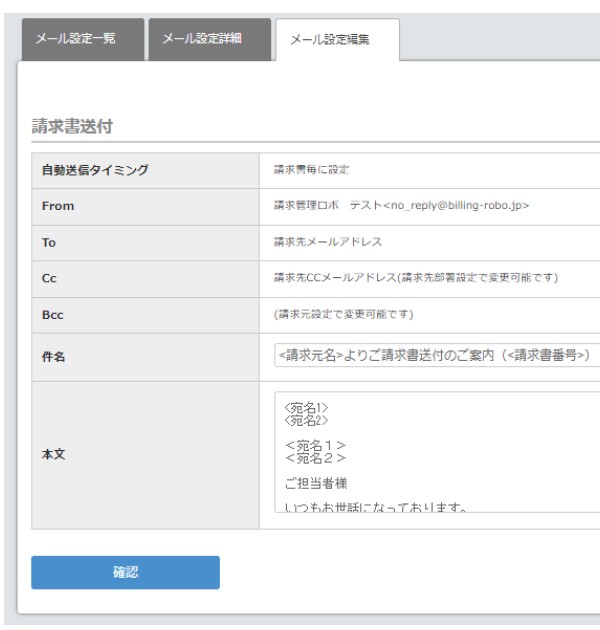 ▼請求管理ロボの請求書送付メール設定画面の例