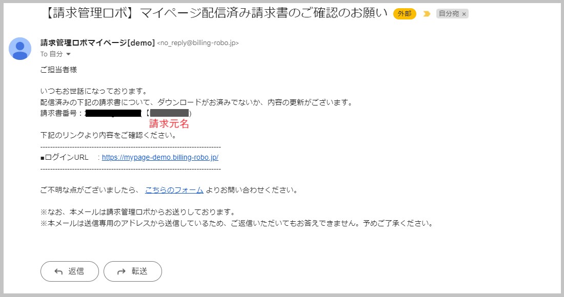 ▼請求管理ロボで請求先に送付されるメールのイメージ