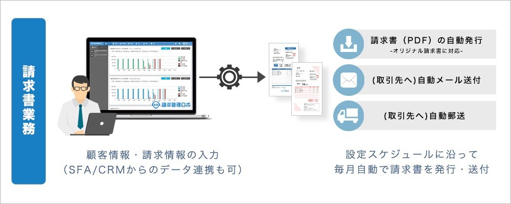 ▼請求管理ロボでできる請求書発行・自動メール送付のイメージ