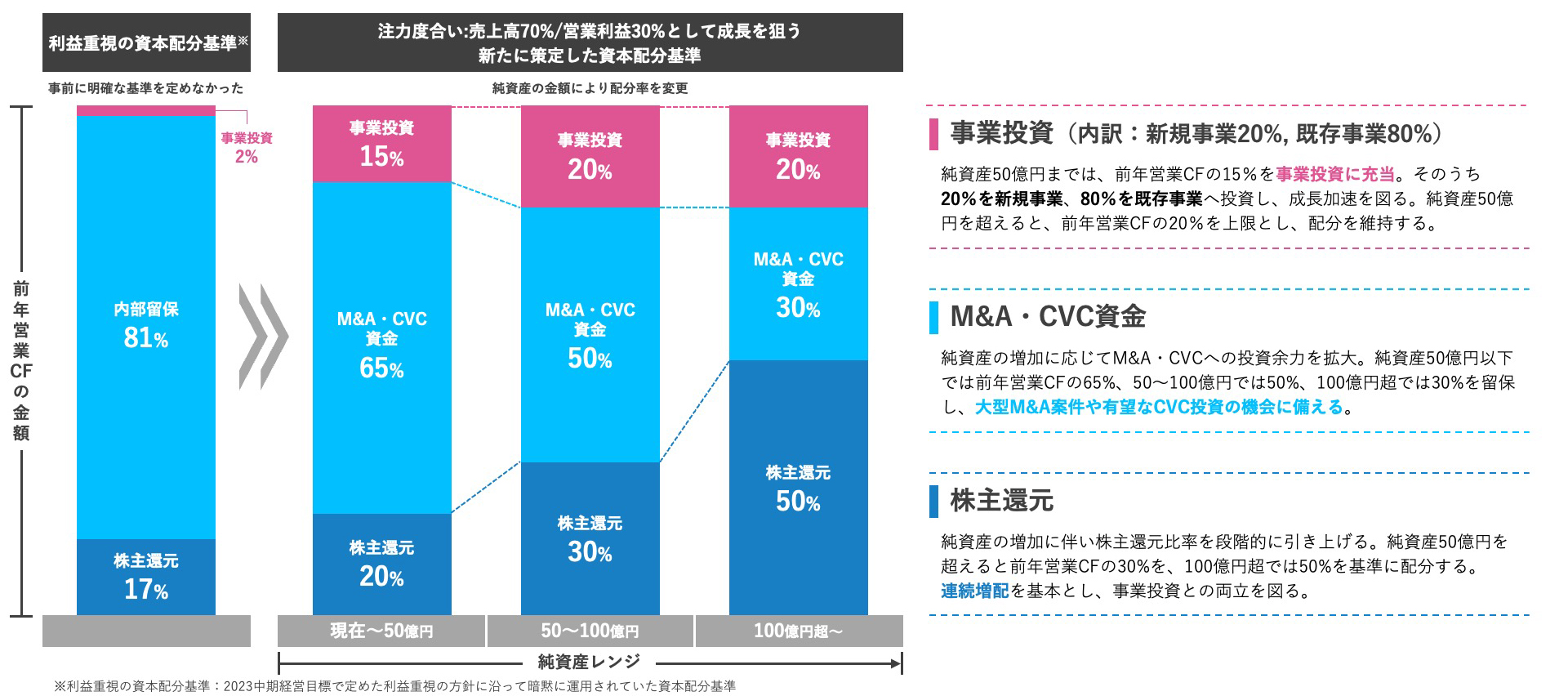 前年営業CFの金額をもとにした資本配分基準
