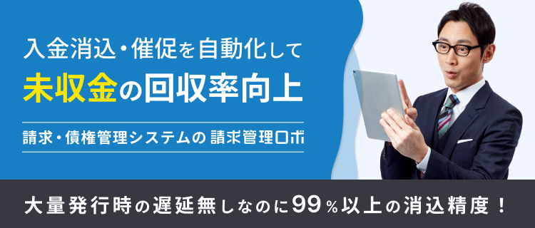 請求書発行サービスに、入金消込や債権管理に関する機能が付帯されていることもあります。サービスにより発行した請求書のデータに基づき、未入金を自動で抽出したり、督促業務を代行したり、請求に関する一連の業務をそのままアウトソース・自動化できます。