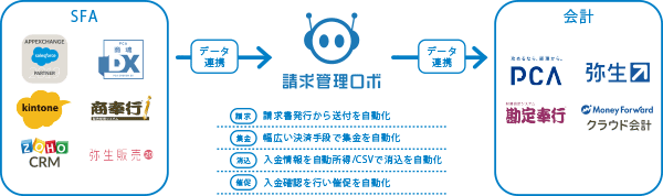 請求先情報や請求金額などを最初に登録するだけ。(SFAやCRMから顧客情報のデータ連携可。)