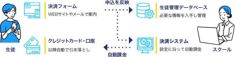 高セキュアな決済会社のデータベースで、決済情報と紐づけて生徒情報の管理ができます。