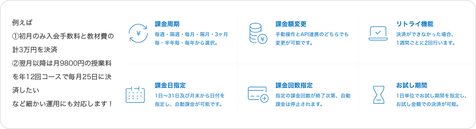 - 入会費や教材費などの費用を、その月の月謝と一括で決済したい